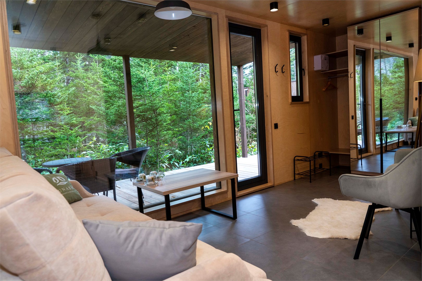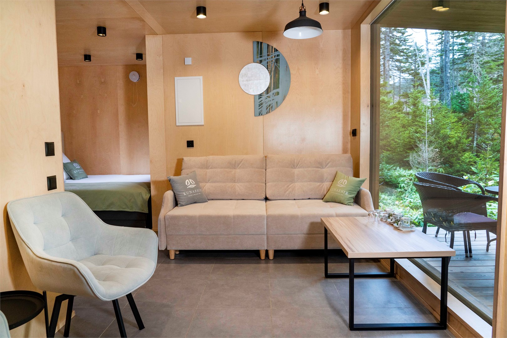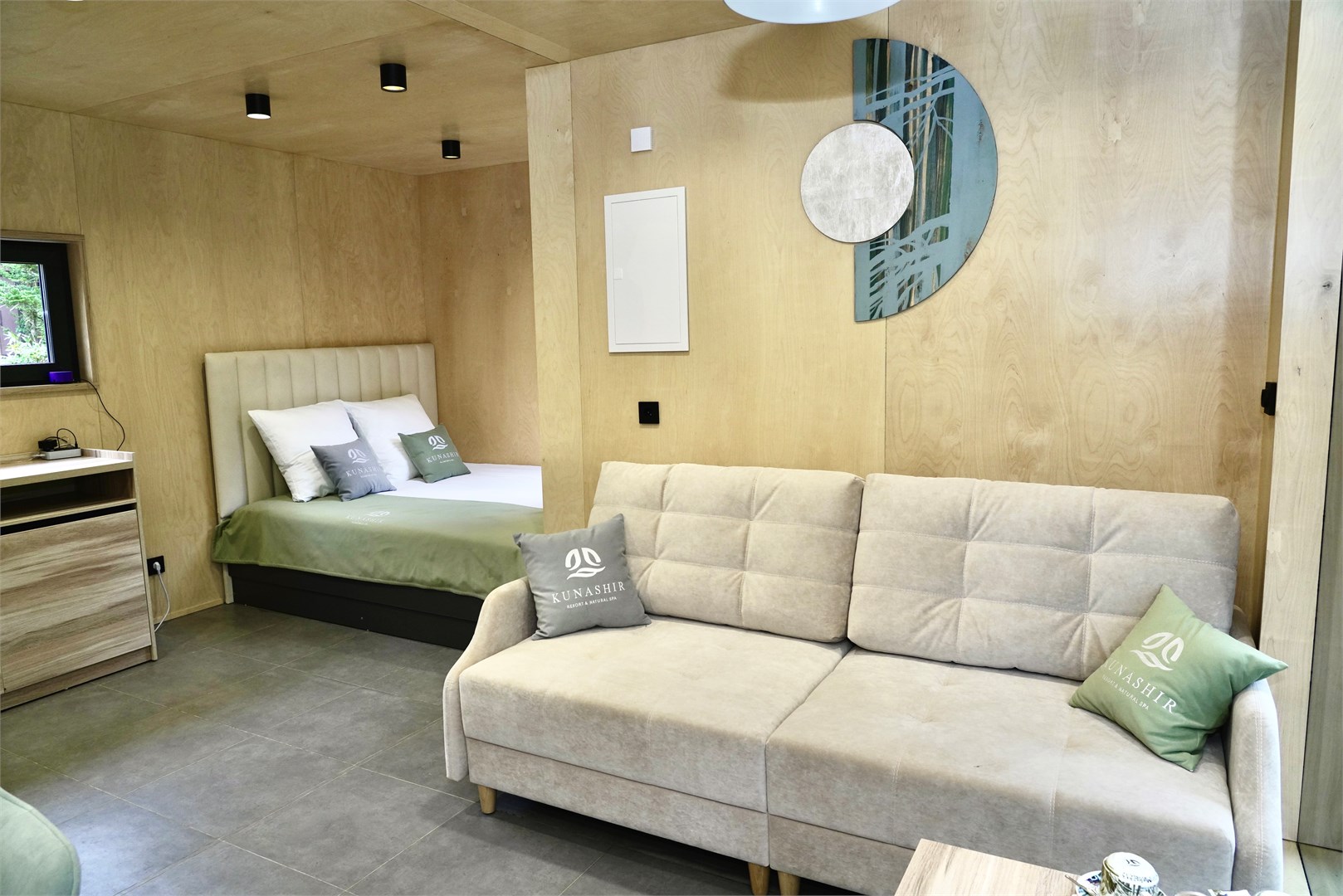 - Оборудование: кондиционер, умная колонка, чайный набор посуды