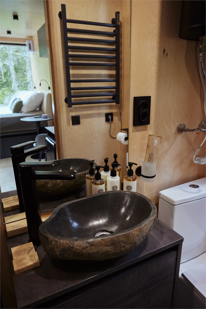 - Санузел: с душем, тапочки, туалетные принадлежности, фен, халат